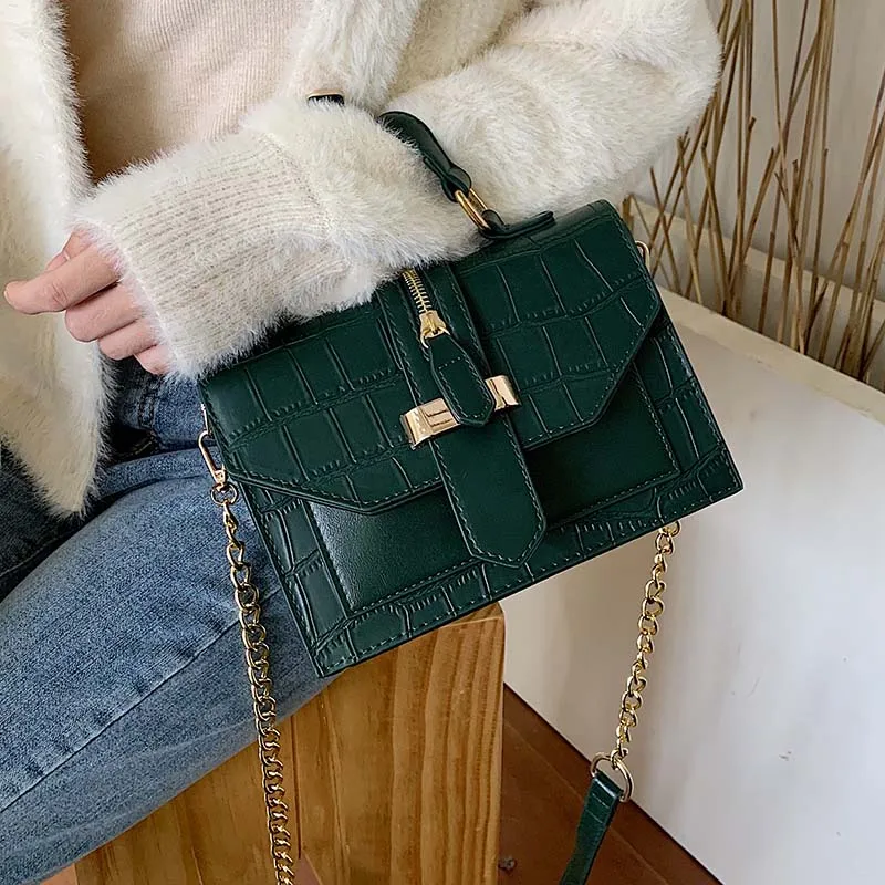 Маття зеленый из искусственной кожи цепи дизайнерские сумки через плечо Для женщин цепочка маленькая дамская сумочка женские сумки дизайн...
