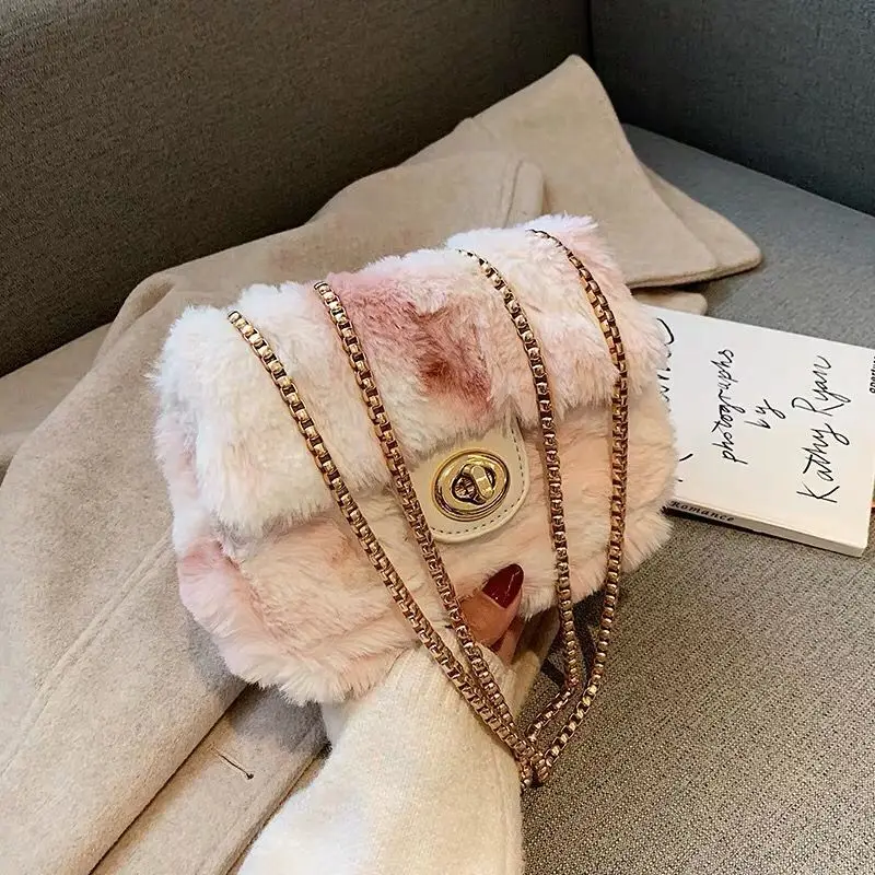 Элегантная женская квадратная маленькая сумка через плечо 2019 зимняя новая мягкая плюшевая женская дизайнерская сумка с замком и цепочкой с...