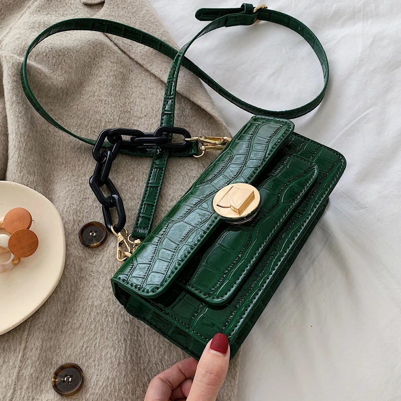 Модные женские сумки с квадратным клапаном из кожи аллигатора, дизайнерские сумки на плечо с узором «крокодиловая кожа», роскошная женская ...