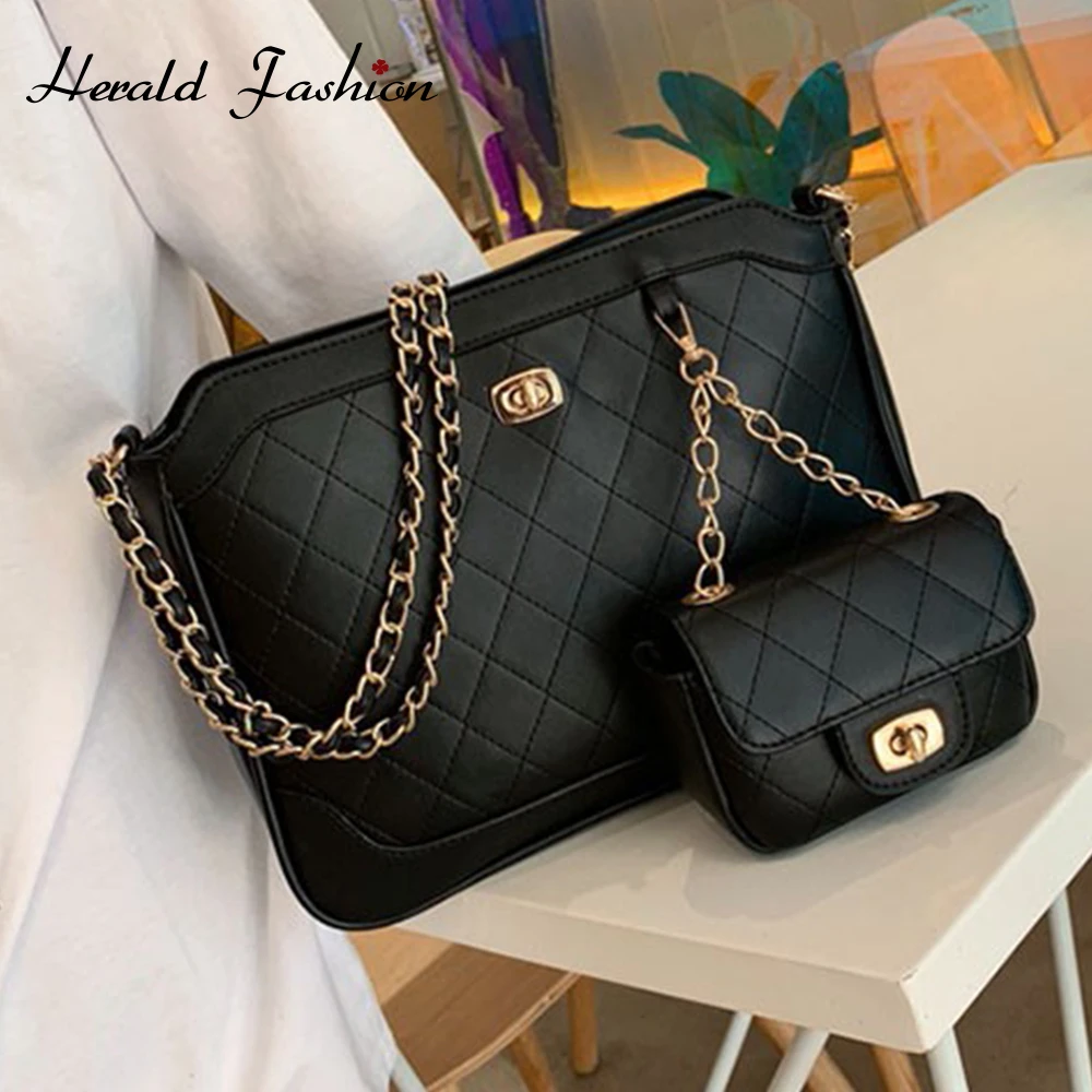 Herald Fashion 2 шт./компл. Алмазная Желтая Женская сумка, комплект, качественная Роскошная PU кожаная цепочка, женские дизайнерские большие сумки н...