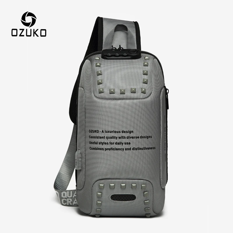 OZUKO модные мужские сумки через плечо с заклепками, противоугонная сумка-мессенджер, зарядка через usb, нагрудный пакет, короткая дорожная вод...