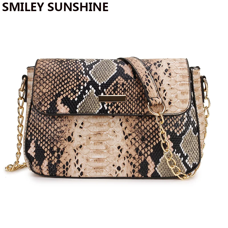 Smiley sunshine маленькая сумка через плечо сумка для Для женщин со змеиным принтом из искусственной кожи сумка женская сумка-мессенджер с цепочко...