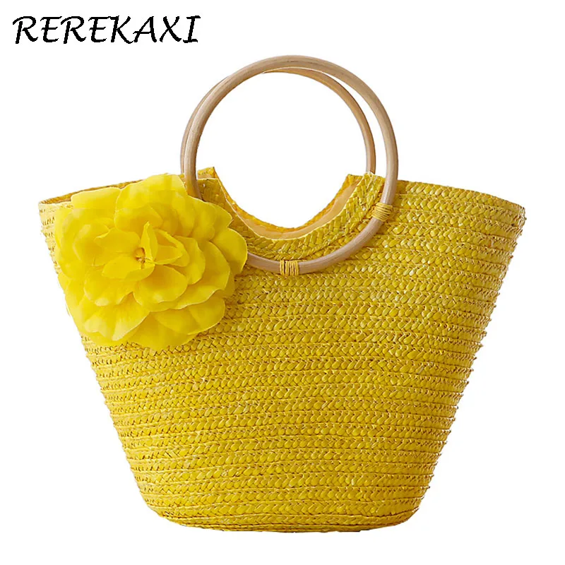 REREKAXI цветок летняя пляжная сумка пшеничный полюс переплетения Женская сумочка богемный Дамская соломы сумки высокое ёмкость Сумка-тоут дл...