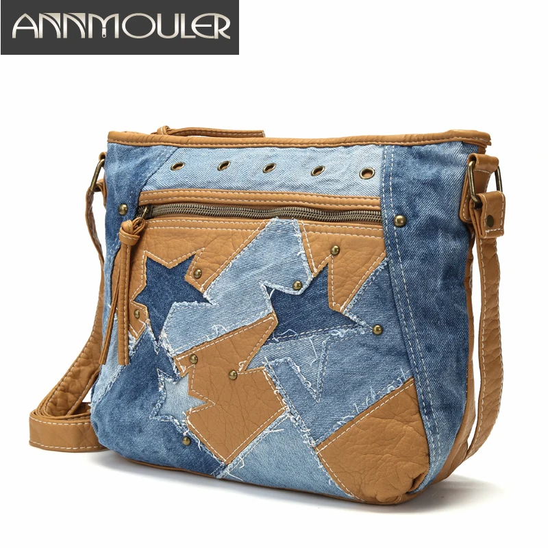 Модные женские сумки, роскошная сумка, дизайнерская джинсовая Наплечная Сумка, джинсовая сумка в стиле пэчворк со звездами, мягкая моющаяся кожаная сумка через плечо, кошелек