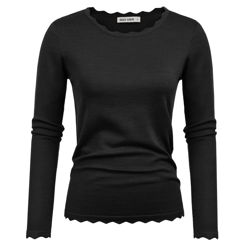 Женская трикотажная одежда на весну и осень, пуловер с длинными рукавами и зубчатым вырезом, вязаный свитер, однотонный базовый стрейчевый ...