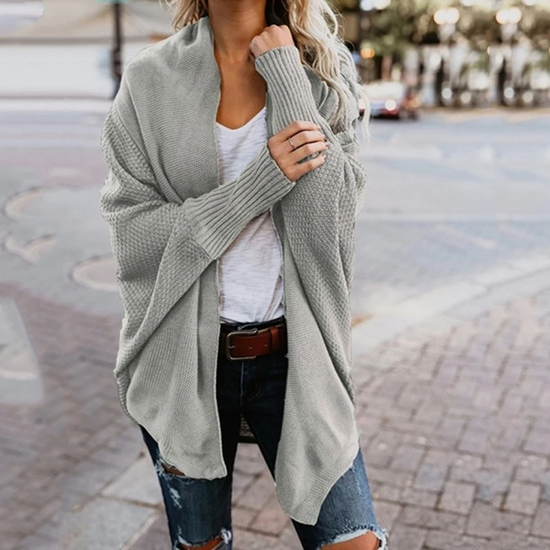 Женский свитер кардиган 2019 осень сплошной цвет свободный свитер длинный рукав v-образный вырез вязаный женский Повседневный свитер