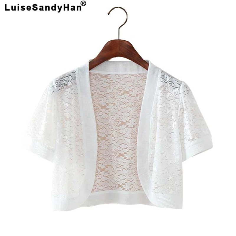 Обертывания куртки 2019 Для женщин Дамы с коротким рукавом укороченный Болеро Белый Черный кружевные аксессуары куртка с v-образным вырезом