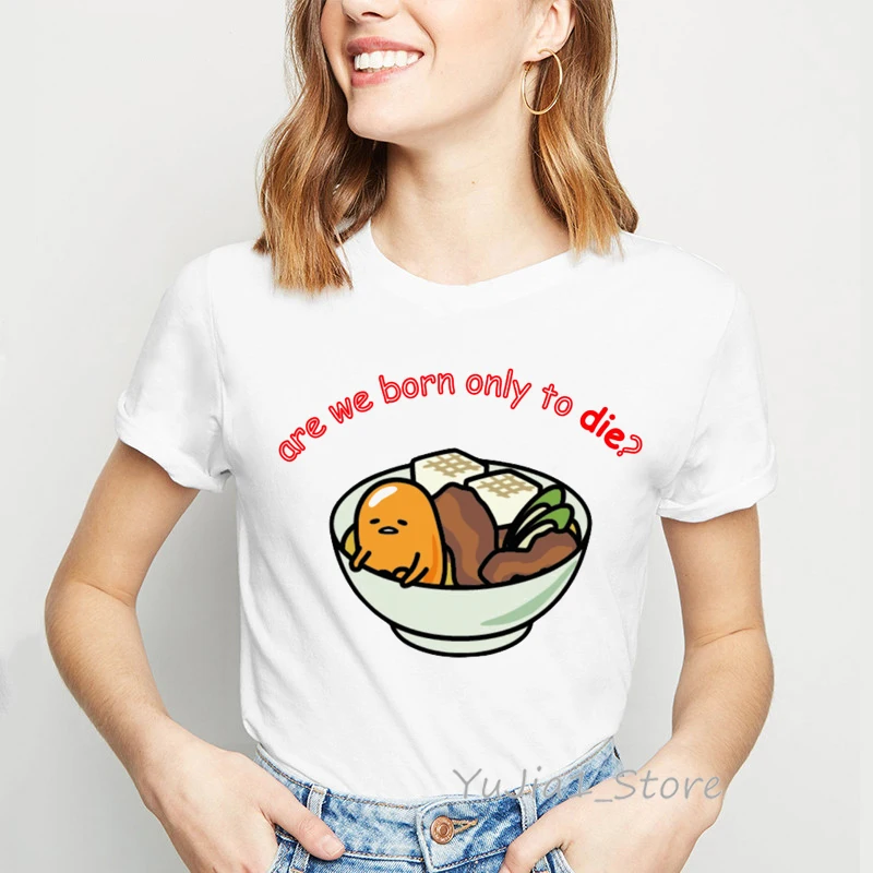 Есть ли у нас только для того, чтобы надпись Gudetama принт Забавные футболки для женщин ленивый яйцо футболка femme 90s одежда tumblr Графический Тройники