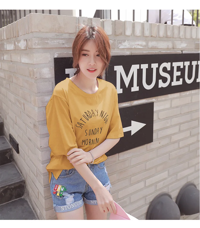 Новое поступление 2019 весна лето футболка Топы женские с коротким рукавом с круглым вырезом Футболка с принтом Повседневная винтажная Цвето...