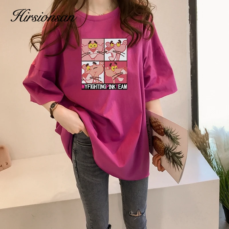 Женская футболка с принтом розовой Пантеры Hirsionsan, новинка 2020, корейские женские футболки в стиле Харадзюку, Kawaii, мягкие повседневные топы, футболка с рисунком