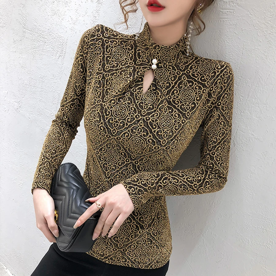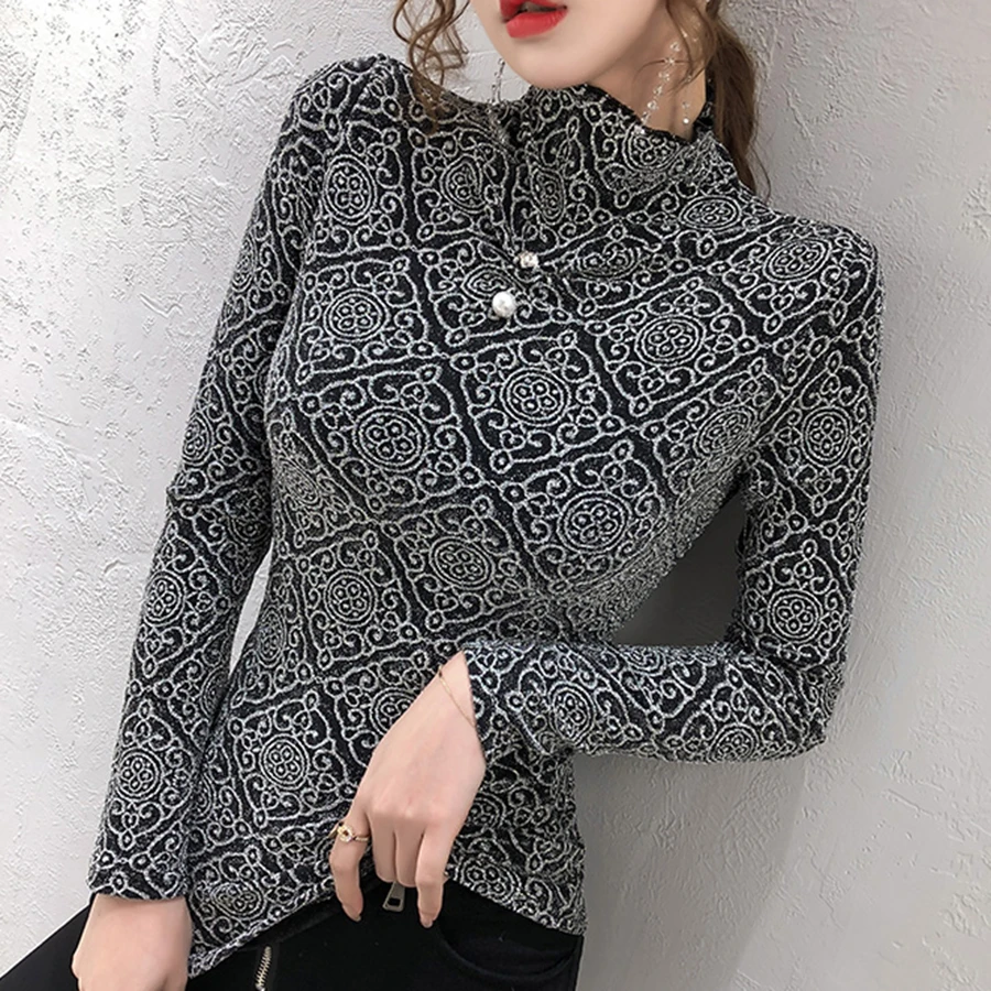 Водолазка, винтажные рубашки, весна 2020 размера плюс, футболка, элегантная, длинный рукав, женская футболка, топы, сетчатая рубашка, женская футболка, одежда