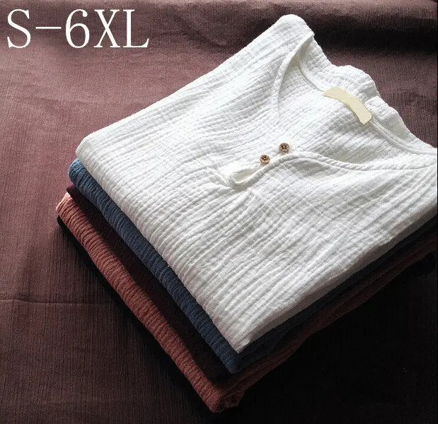 S-5XL 6XL плюс размеры повседневное для женщин футболка, 2019 Весна с длинным рукавом из хлопка и льна рубашки для мальчиков, круглым вырезо