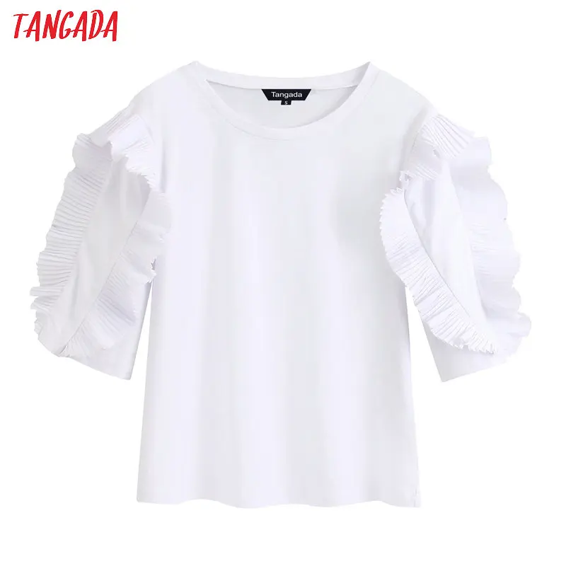 Женская винтажная белая хлопковая Футболка Tangada, летняя футболка с коротким рукавом и круглым вырезом, Повседневная Уличная одежда, Топ BE338