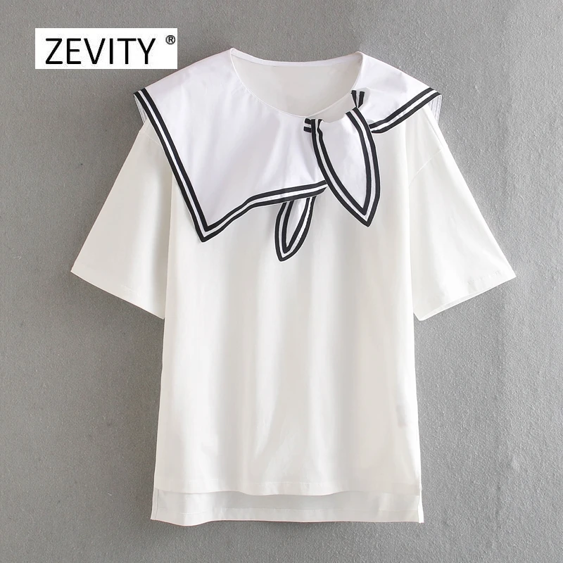 Новинка 2020, женские модные повседневные футболки в стиле пэчворк с матросским воротником, женские стильные футболки с коротким рукавом, шикарные брендовые топы для отдыха T657