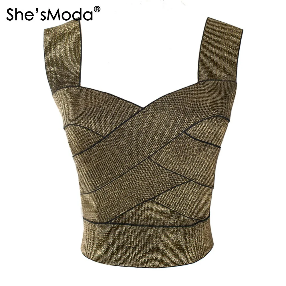 She'sModa повязки Bling цвета: золотистый, серебристый тонкий женские спандекс клубвечерние Вечеринка майки-ками жилет