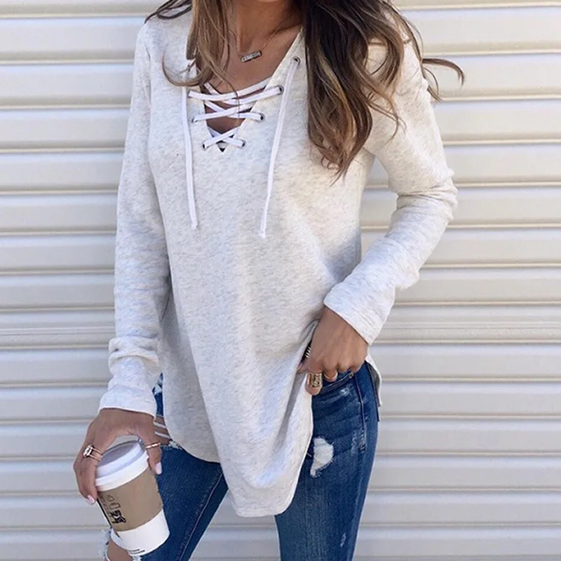 Плюс Размеры рубашка Повседневное Для женщин Мода с длинным рукавом с v-образным вырезом рубашка нерегулярные Streetwears одноцветное Цвет Drawstring...