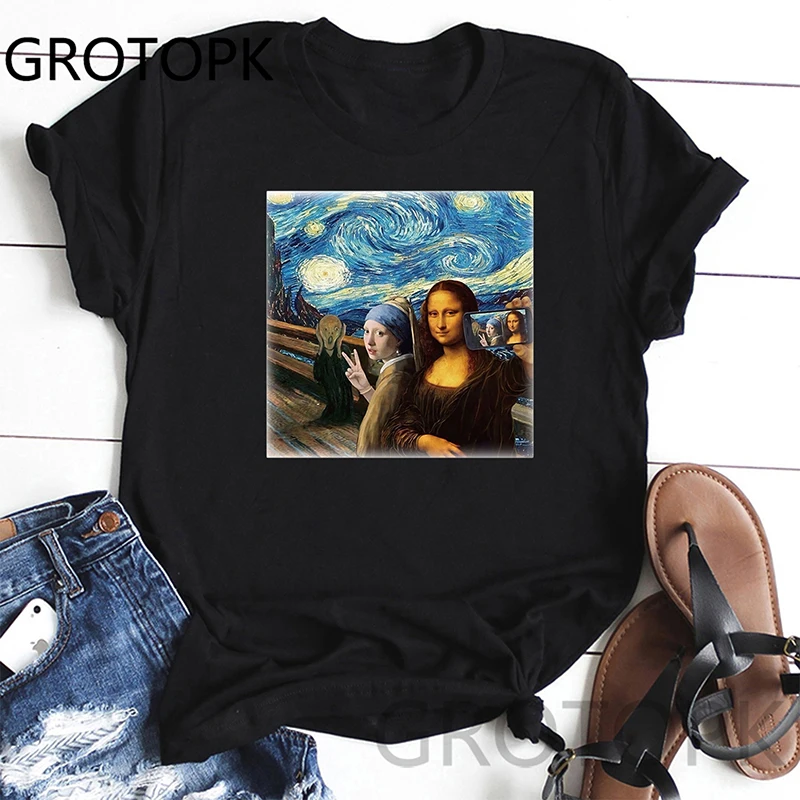 Винтажная Футболка для женщин Ван Гог с цветочным принтом Футболка Camiseta mujer Эстетическая одежда Харадзюку улззанг, футболка белая футболка,...