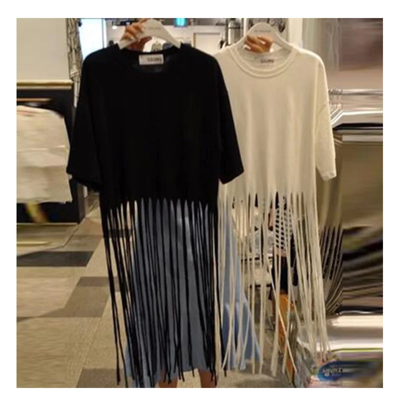 Nepole tassels Женская белая черная футболка корейская модная одежда повседневные свободные женские топы с коротким рукавом и круглым вырезом XX147