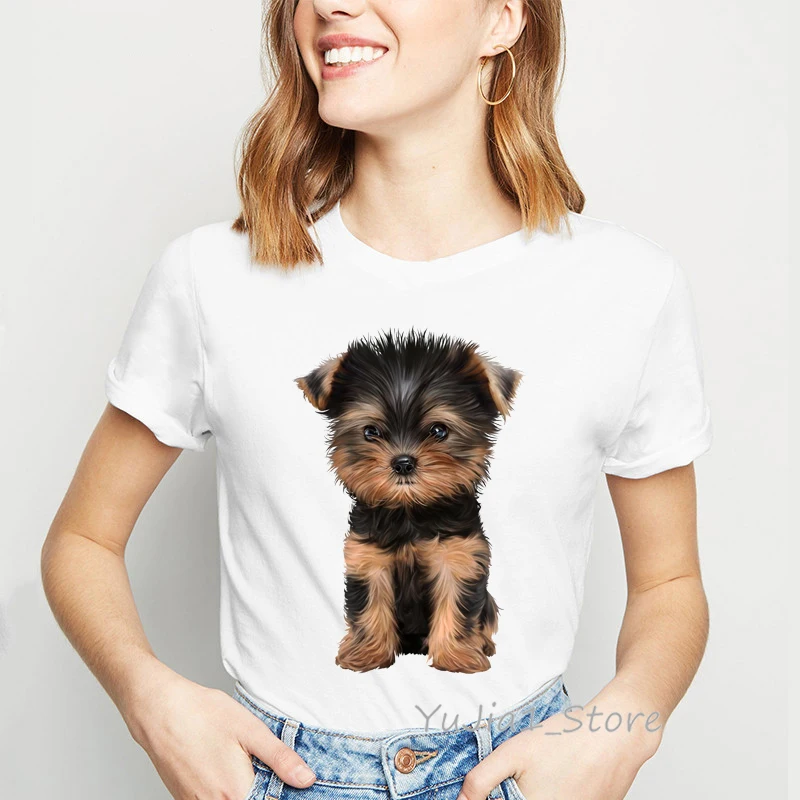 Очаровательная Йоркширский терьер, футболка с принтом для женщин, каваи, принт с животными, футболка, Женская белая футболка на заказ, футбо...