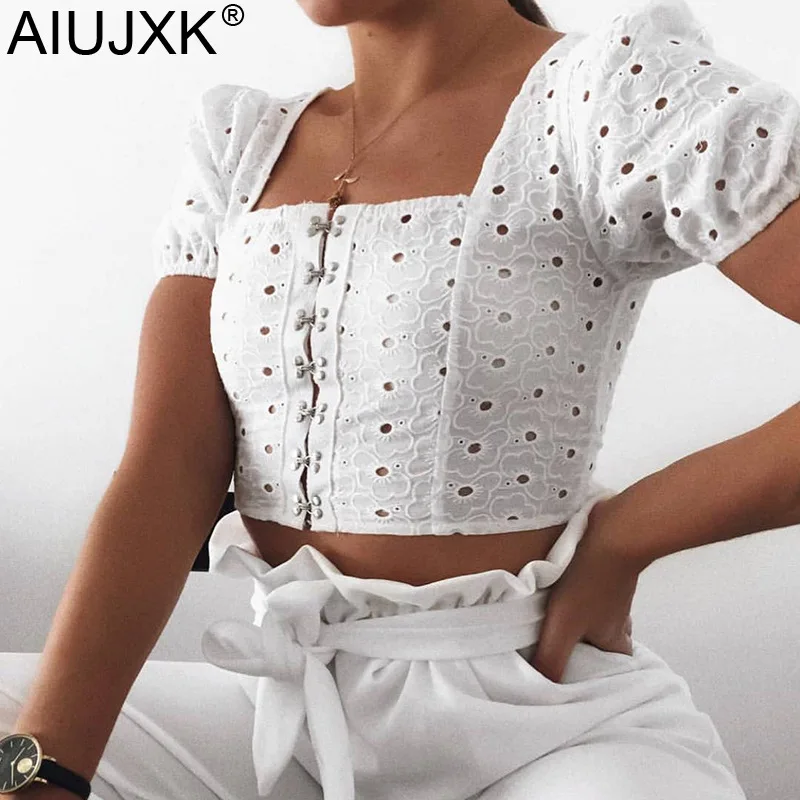 AIUJXK Мода выдалбливают Кружева укороченный Топ для женщин Новое поступление 2019 белые тонкие женские безрукавки летние сексуальные Обрезанн...