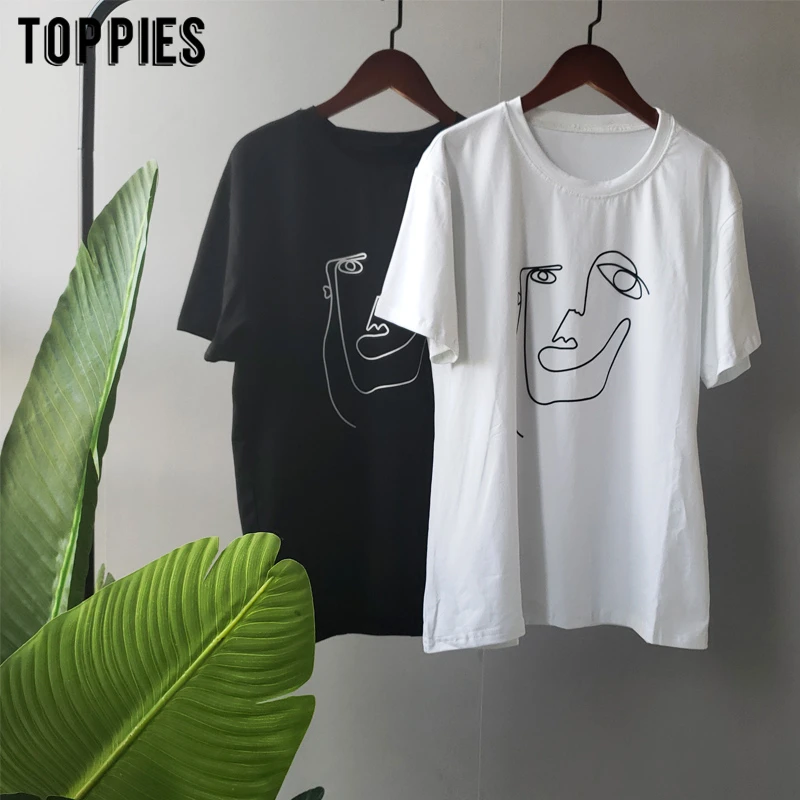 Модные футболки с абстрактными рисунками, белые и черные женские топы, летние футболки harajuku, уличная одежда, 2020