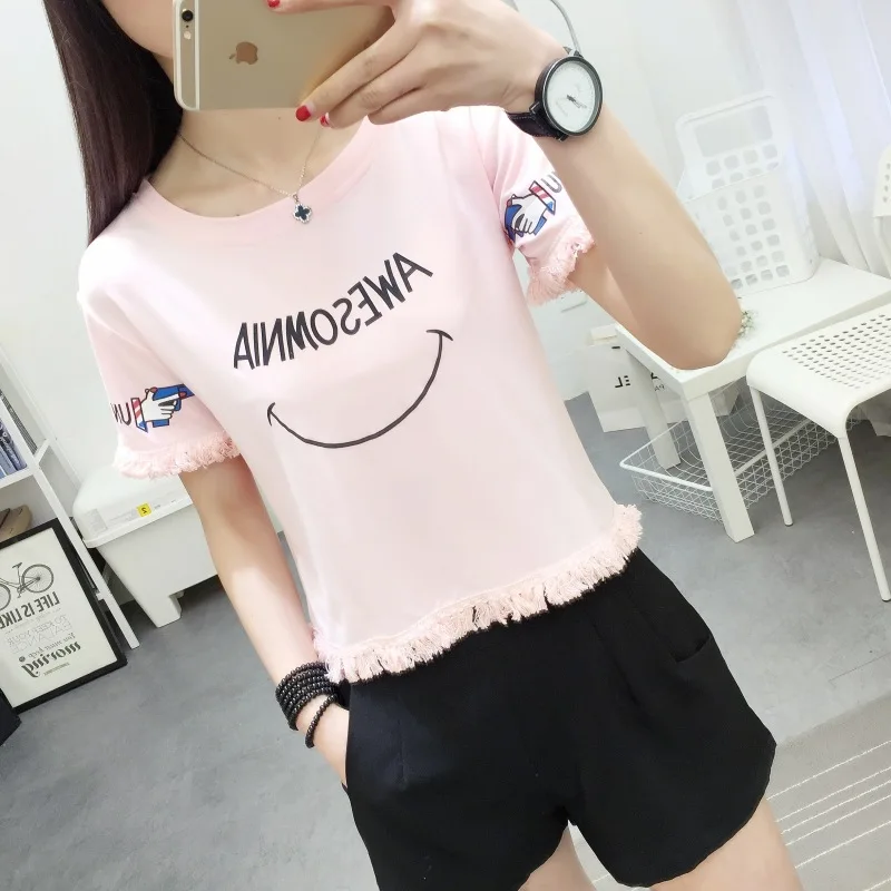 Модные Новое поступление женские футболки летние с коротким рукавом футболки с принтом топы женские футболки Плюс Размер S-2XL