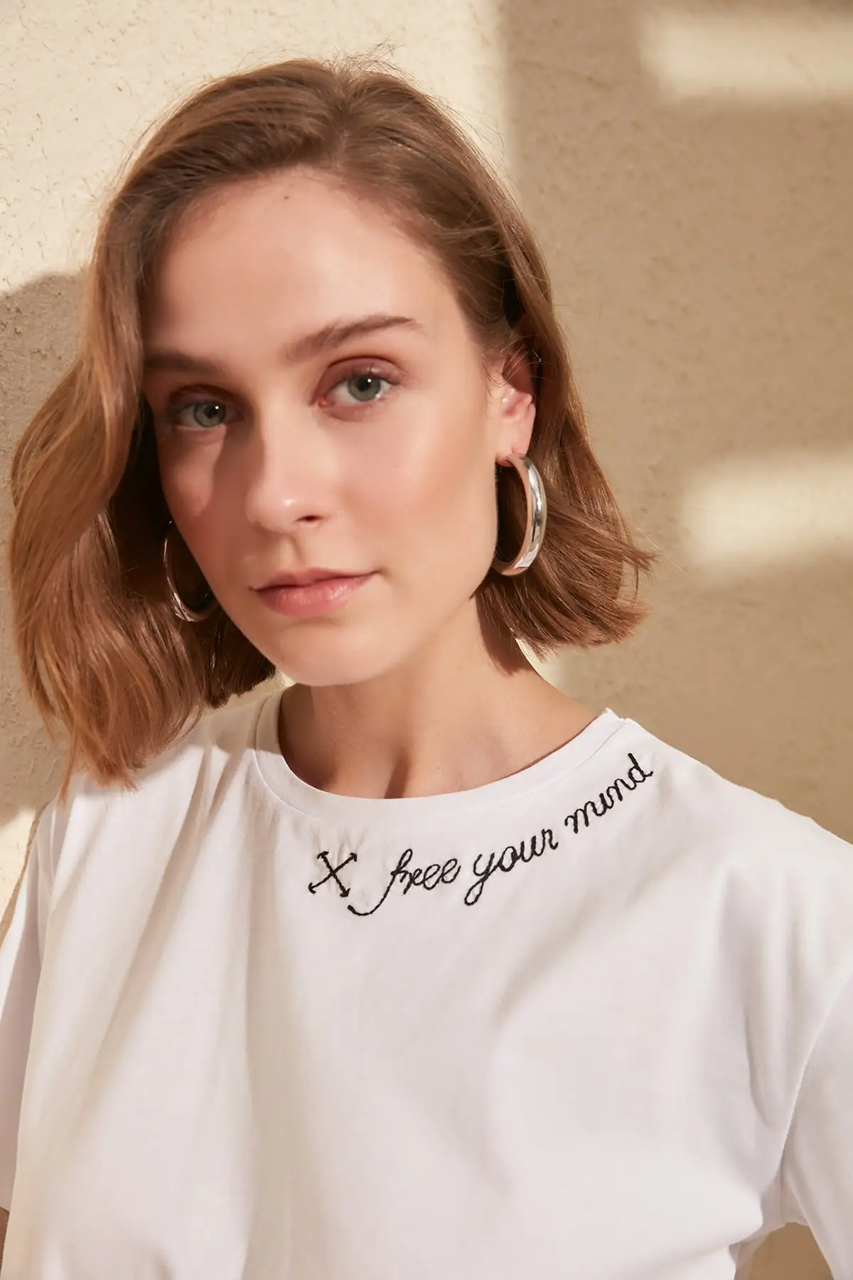 Trendyol вышитые полу-Приталенная вязаная футболка TWOSS20TS0204