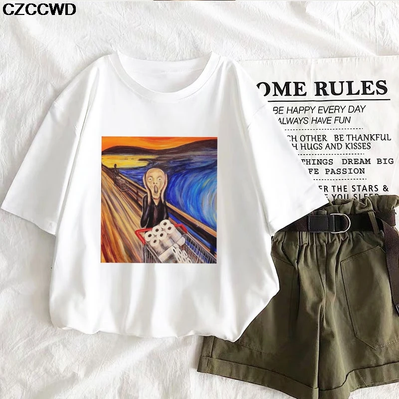 Женская футболка с принтом Ван Гога, летняя модная свободная футболка с короткими рукавами, Повседневная футболка, большие размеры