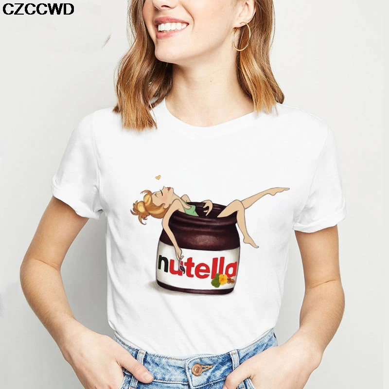 CZCCWD женская одежда 2019 уличная белая футболка Харадзюку Мода Nutella принцесса душ письмо футболка Досуг женская футболка