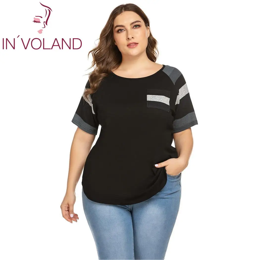 Женские футболки больших размеров, повседневные топы с круглым вырезом и коротким рукавом, плюс Свободные Лоскутные Полосатые футболки, летняя футболка, топ, XL-5XL