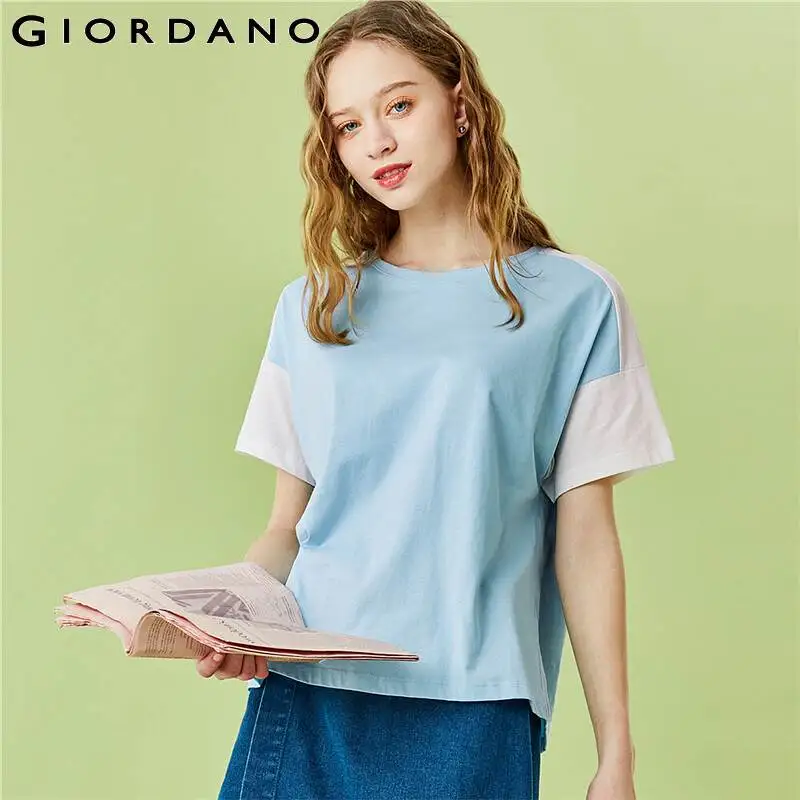 Giordano женские футболки хлопок реглан контрастные футболки ребристые Crewneck Короткие рукава удобные Camiseta Mujer 13320211