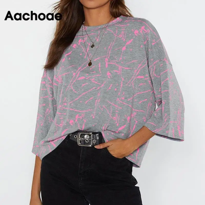 Женская футболка 2019 летняя футболка с принтом короткий рукав с регулирующей пряжкой o-образным вырезом повседневные свободные топы Туника ...