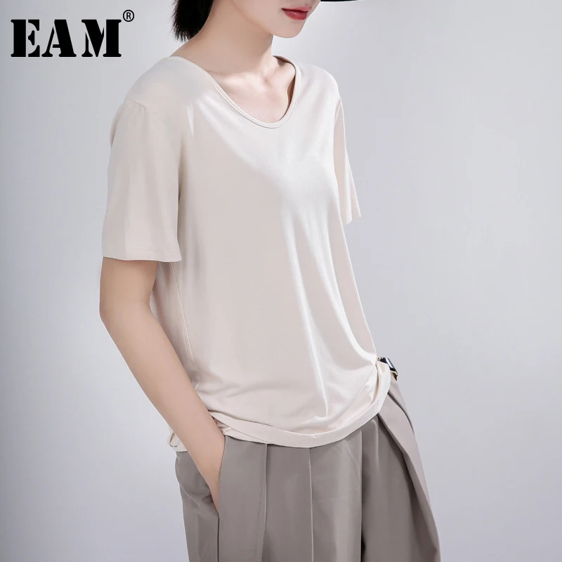 Женская футболка EAM, Однотонная футболка с коротким рукавом и круглым вырезом на весну-лето 2020 1T358