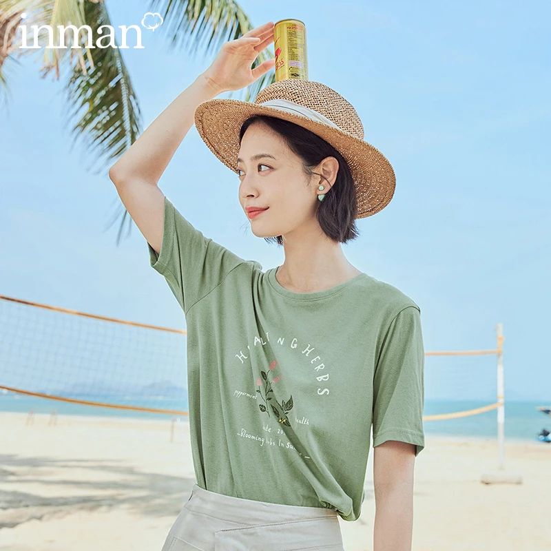 INMAN, лето 2020, Новое поступление, чистый хлопок, ретро принт, модная Универсальная футболка с короткими рукавами