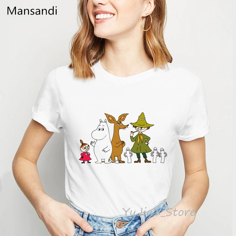 Moomins, футболка с надписью на день, футболки с графическим принтом, женские модные Забавные футболки, Женская Футболка harajuku tumblr, топы, футболка femme
