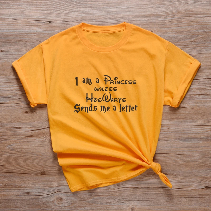 ONSEME женские хлопковые базовые футболки я принцесса, если Хогвартс не отправляет мне письмо футболка женские Harajuku футболки с символикой Хэл...