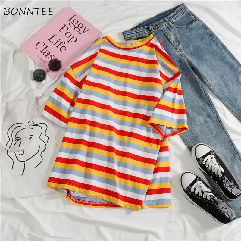 Футболки Для женщин, в Корейском стиле, для студентов, свободный фасон, для отдыха, подходит ко всему, Для женщин s Костюмы летние простые короткий рукав Высокое качество Новинка