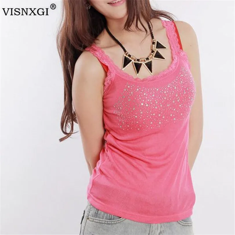 2019 г. модные летние Для женщин со стразами Потрясающие основе майка Топ Футболка Черный, серый цвет белый хлопковый жилет W045
