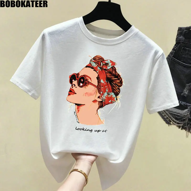 футболка женская Летняя белая футболка из 95% хлопка, Женские топы с коротким рукавом, черная футболки , женская футболка с рисунком, розовая футболки женские , одежда для эластичная футболка большого размера 2020