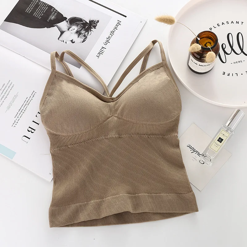 Летние сексуальные Лифчики Бесшовные женские мягкие майки Топ спереди крест v-образный вырез высокая эластичная Женская жилетка