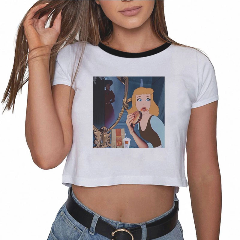 Модная футболка принцессы женская футболка с принтом grunge ulzzang Забавные футболки с героями мультфильмов футболка 90s графическая одежда модн...