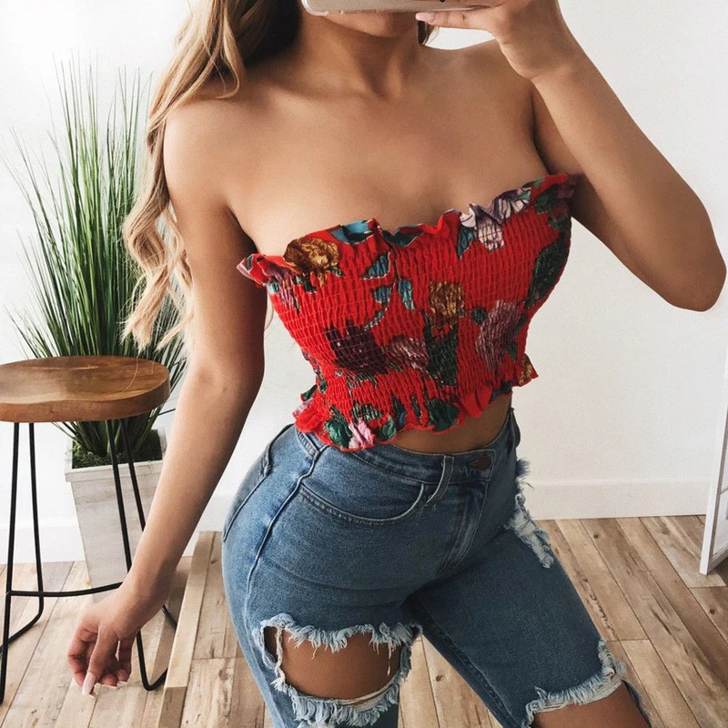 Модный Топ для женщин, сексуальный бюстгальтер без бретелек, бандо, подходит для модных трубок с цветочным принтом, топы, рубашки