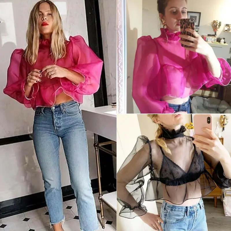 Сексуальная Женская сетчатая Прозрачная Футболка, сетчатая пышная укороченная футболка с коротким рукавом, Клубная Повседневная перспект...