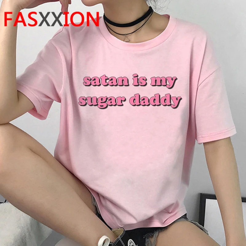 Летние Yes Daddy Письмо печати футболка Для женщин пикантные Топы с коротким рукавом укороченный рубашки