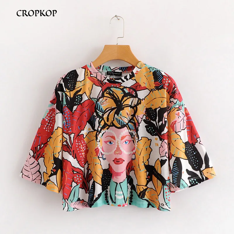 Большие размеры, женские футболки с цветочным рисунком 2019, осенняя одежда, модные эстетические топы, футболки с графическим принтом, женски...