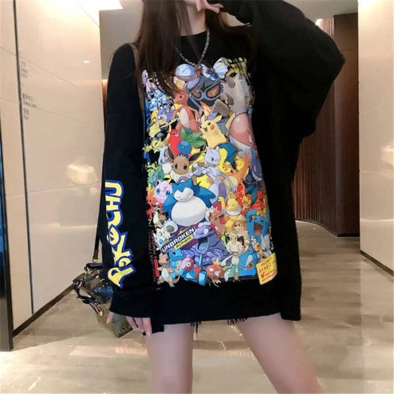 Осенняя Футболка Harajuku уличная футболка с рисунком покемона Женская Милая футболка с принтом из Амина уличная забавная модная футболка в ст...