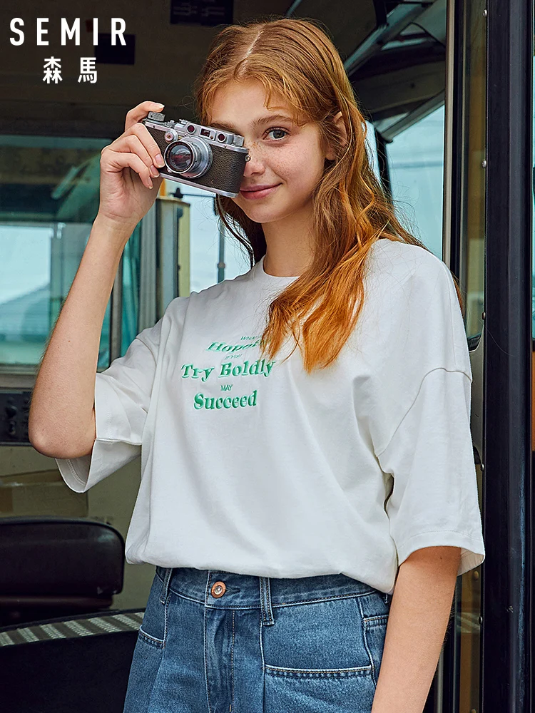 SEMIR пуловер с круглым вырезом футболка с коротким рукавом женская хлопковая тонкая мягкая футболка Женская Повседневная модная одежда