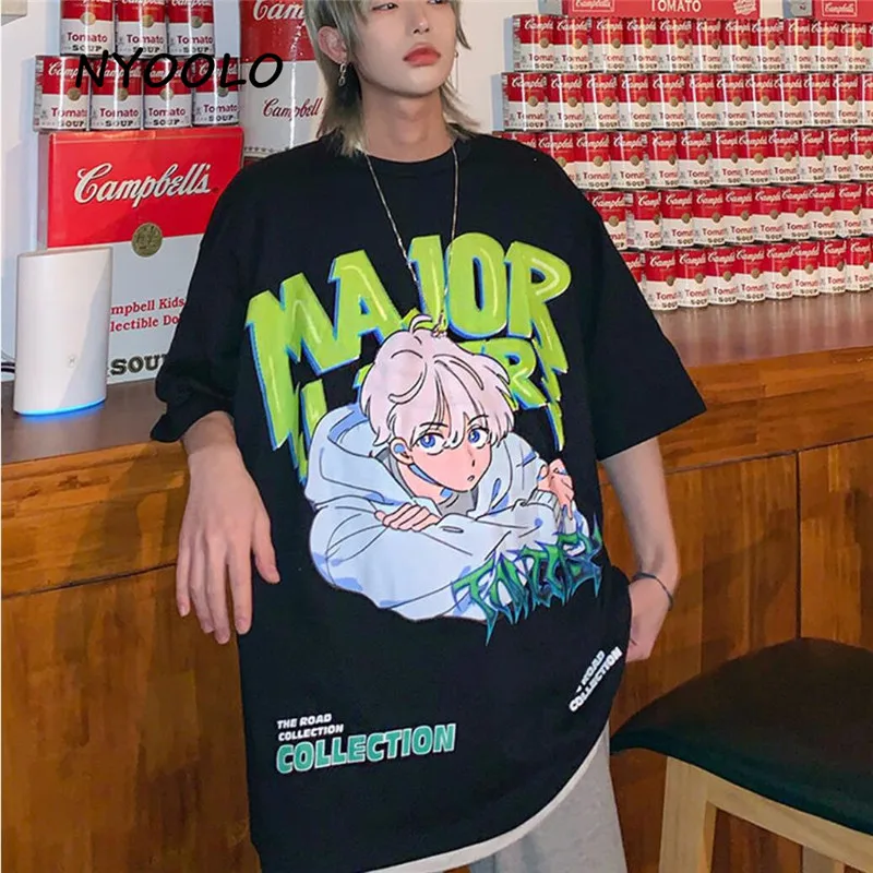 NYOOLO летняя уличная футболка с короткими рукавами и принтом из аниме для мальчиков и женщин, мужская повседневная свободная футболка в стиле хип-хоп с круглым вырезом