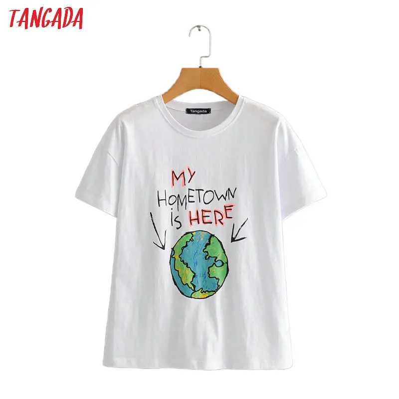 Tangada Женская хлопковая Футболка с вышивкой 2020, Женская Повседневная летняя уличная футболка с коротким рукавом в Европейском стиле, 6Z47