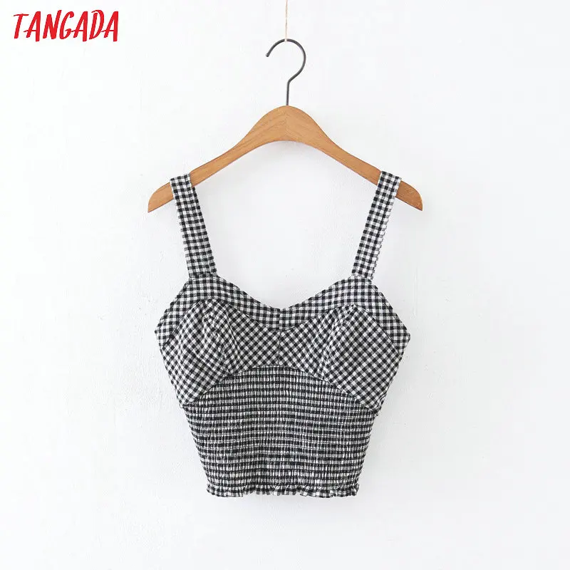 Женский клетчатый Топ Tangada, укороченный топ без рукавов с v-образным вырезом на бретельках, повседневные топы 1J01